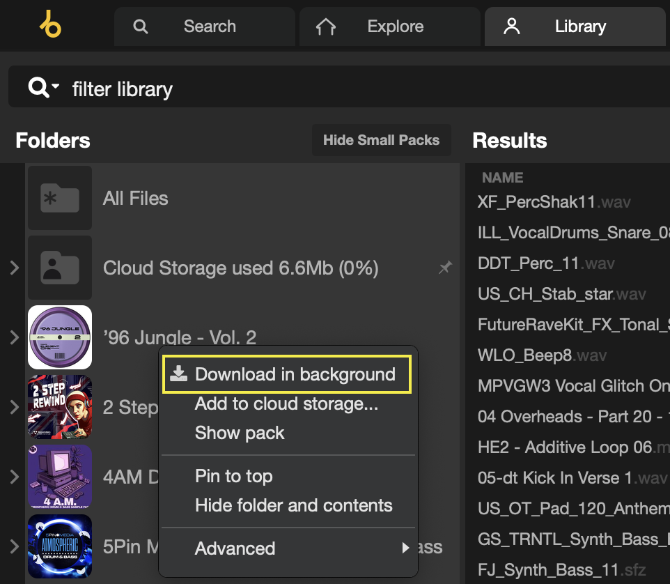 Once the download is finished, right-click one of the folders in your library and select Show in finder (Mac)/Show in Explorer (Windows) to open your Loopcloud library folder.